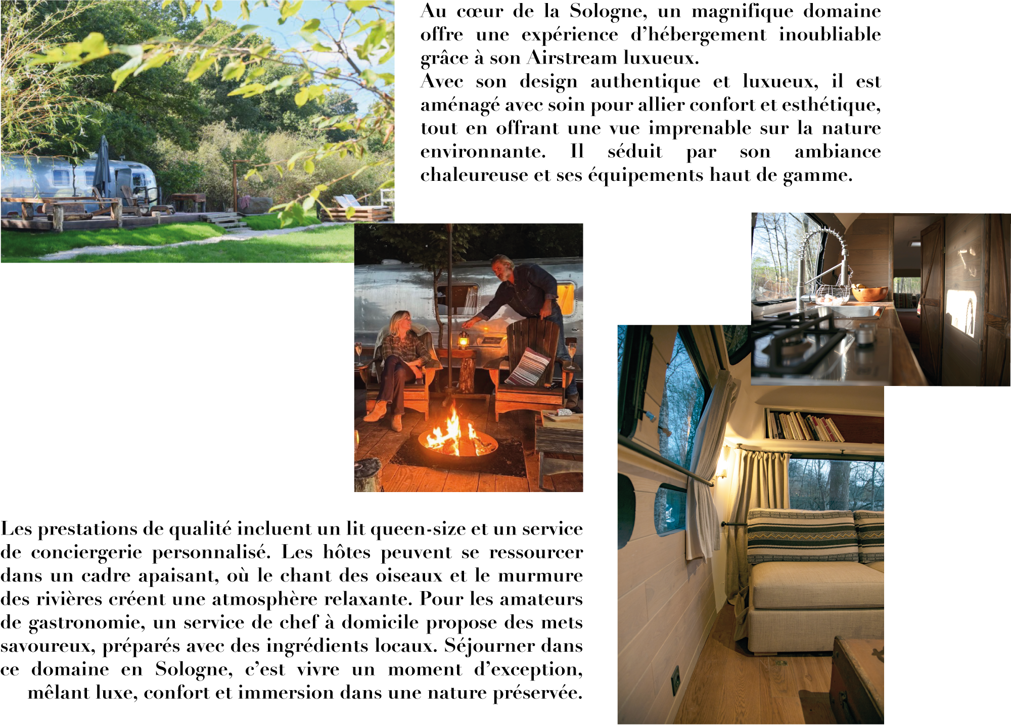 Profitez d’un séjour dans un Airstream rénové avec soin, installé sur un domaine de 20 hectares en pleine Sologne, entre forêts et étangs.